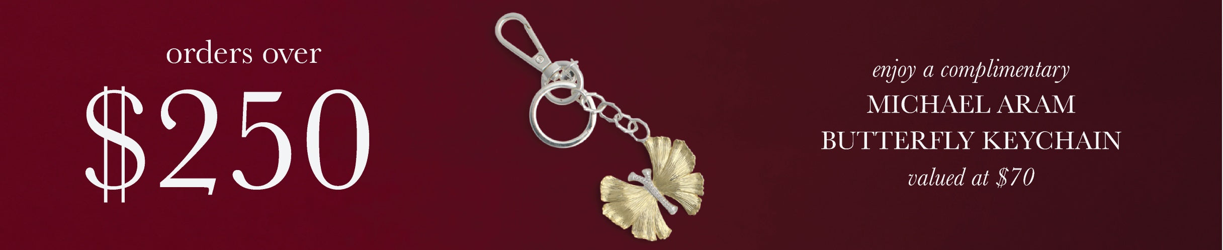 For a limited time SPEND $250 AND UP FOR A FREE Butterfly Ginkgo Key Ring