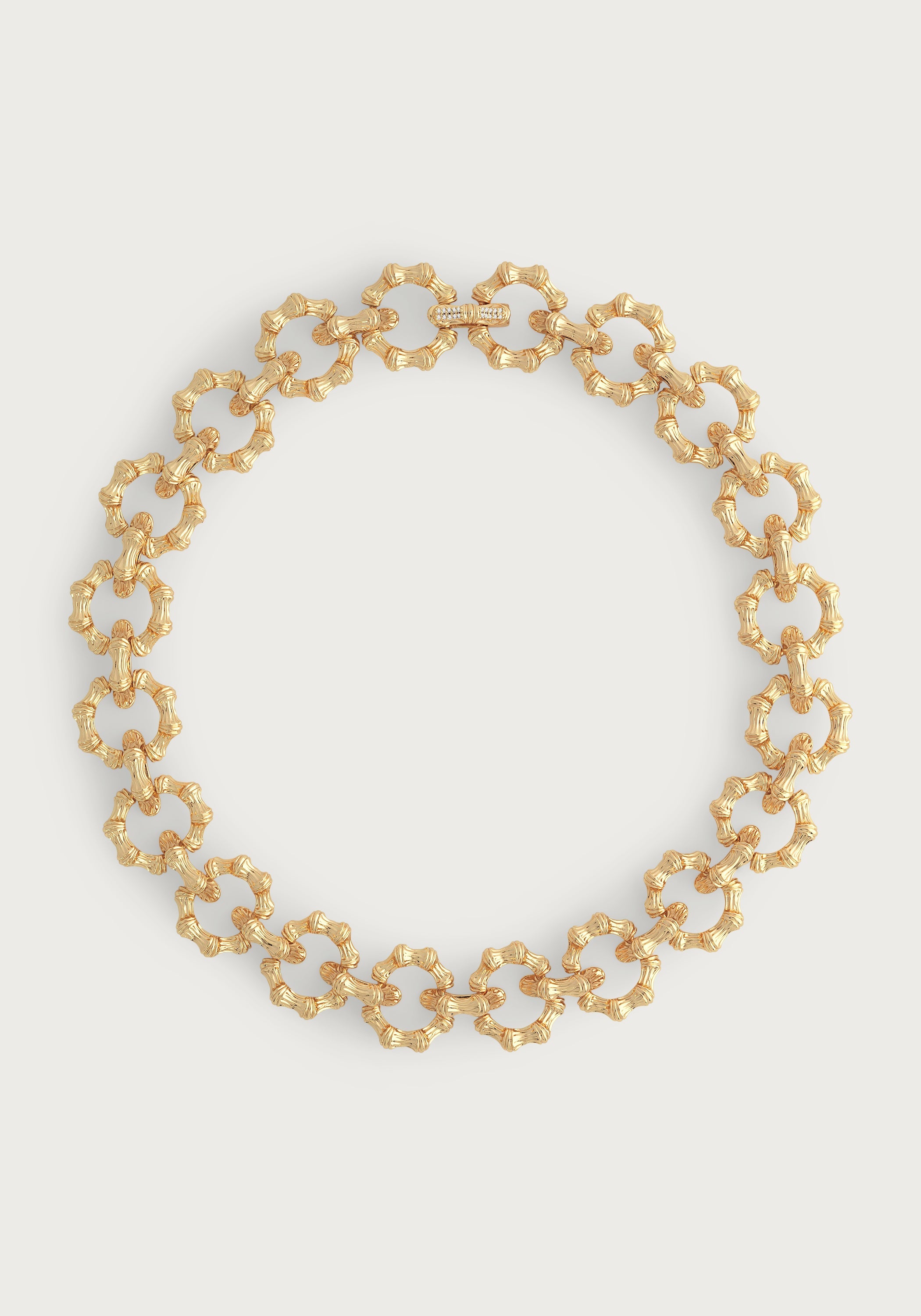 Anabel Aram Jewelry is made with nickel-free brass and dipped in 18k gold. Pieces with embellishments are hand set with crystals.