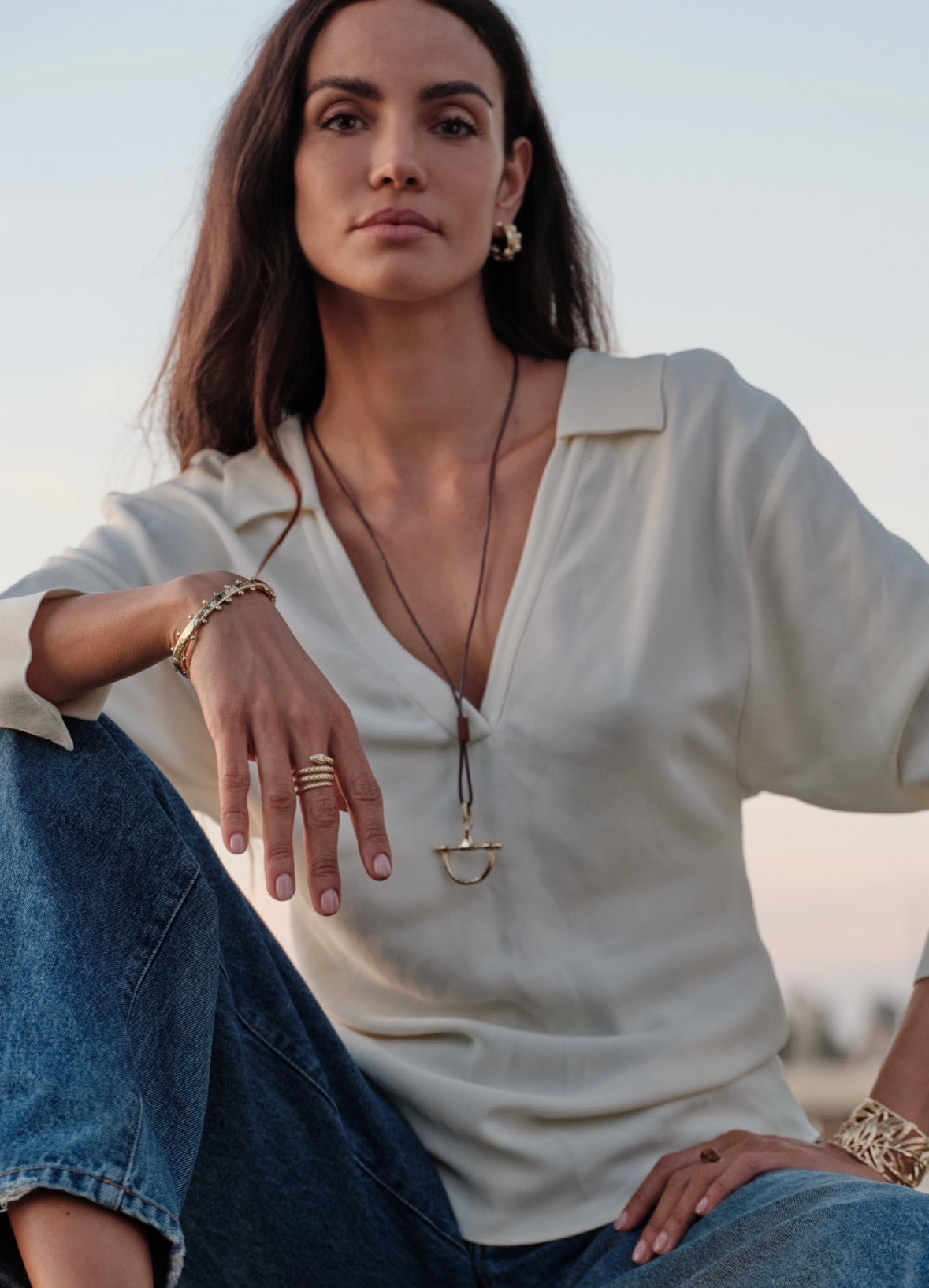 Anabel Aram Jewelry is made with nickel-free brass and dipped in 18k gold. Pieces with embellishments are hand set with crystals.