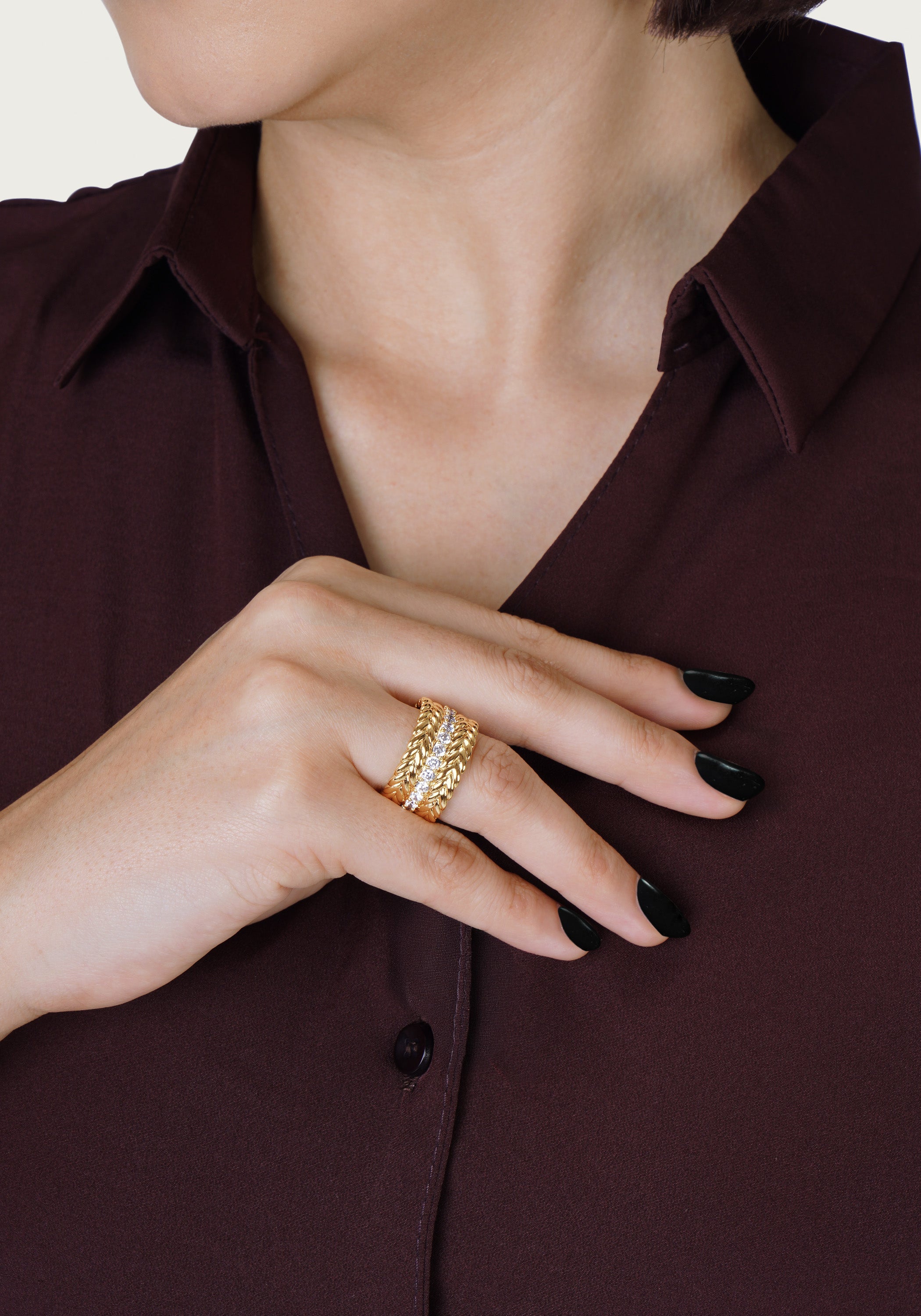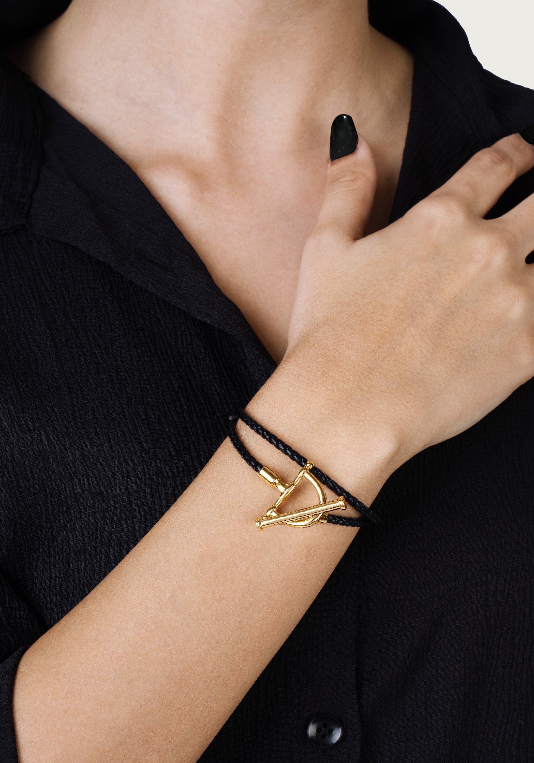 Anabel Aram Jewelry is made with nickel-free brass and dipped in 18k gold. Pieces with embellishments are hand set with crystals.
