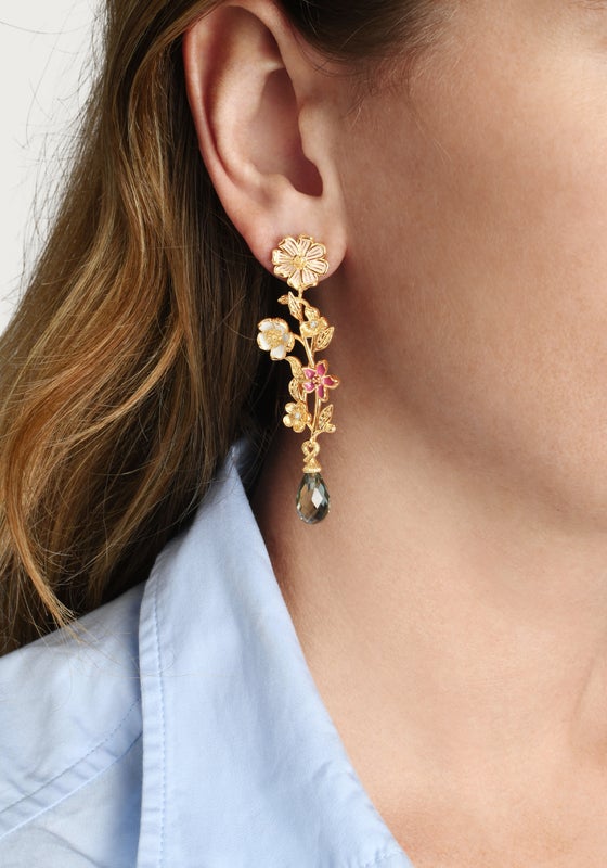 Anabel Aram Jewelry is made with nickel-free brass and dipped in 18k gold. Pieces with embellishments are hand set with crystals.