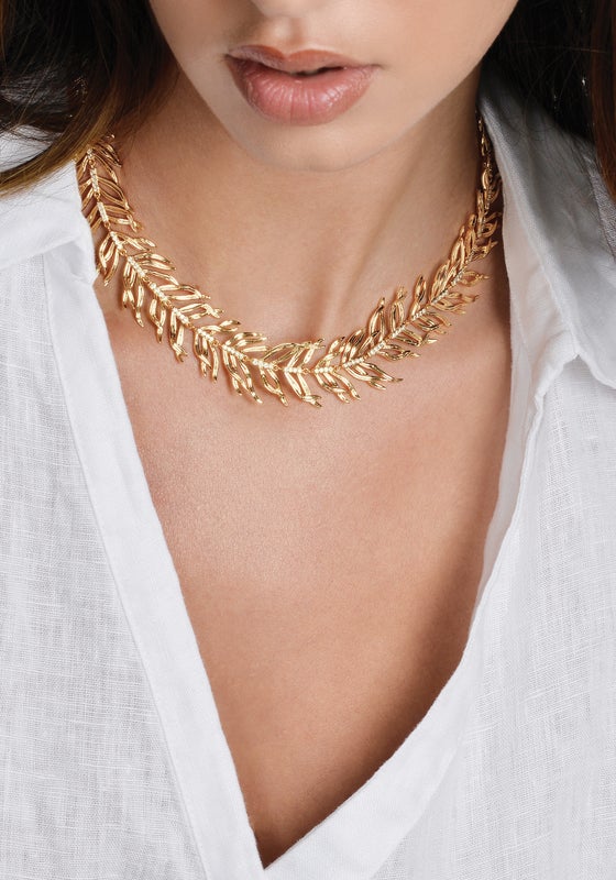 Anabel Aram Jewelry is made with nickel-free brass and dipped in 18k gold. Pieces with embellishments are hand set with crystals.