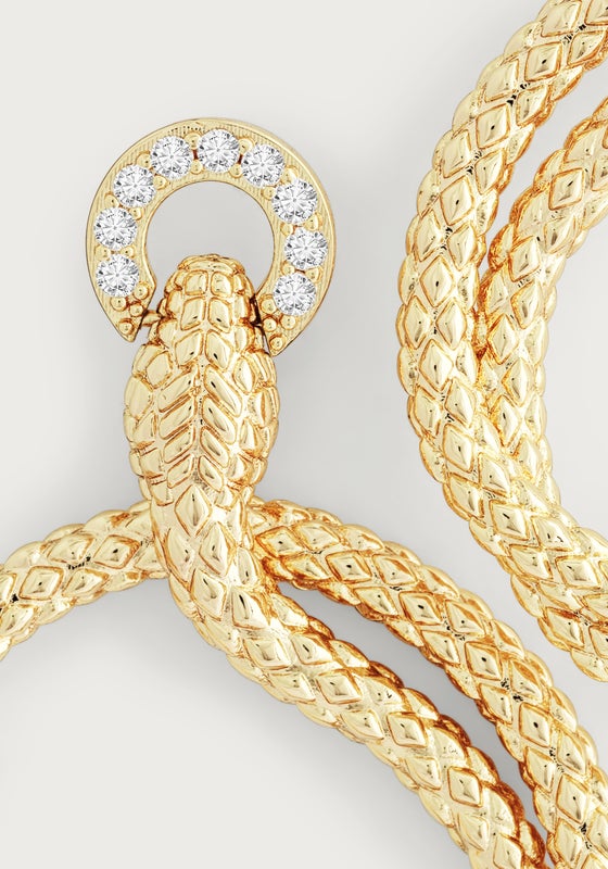 Anabel Aram Jewelry is made with nickel-free brass and dipped in 18k gold. Pieces with embellishments are hand set with crystals.