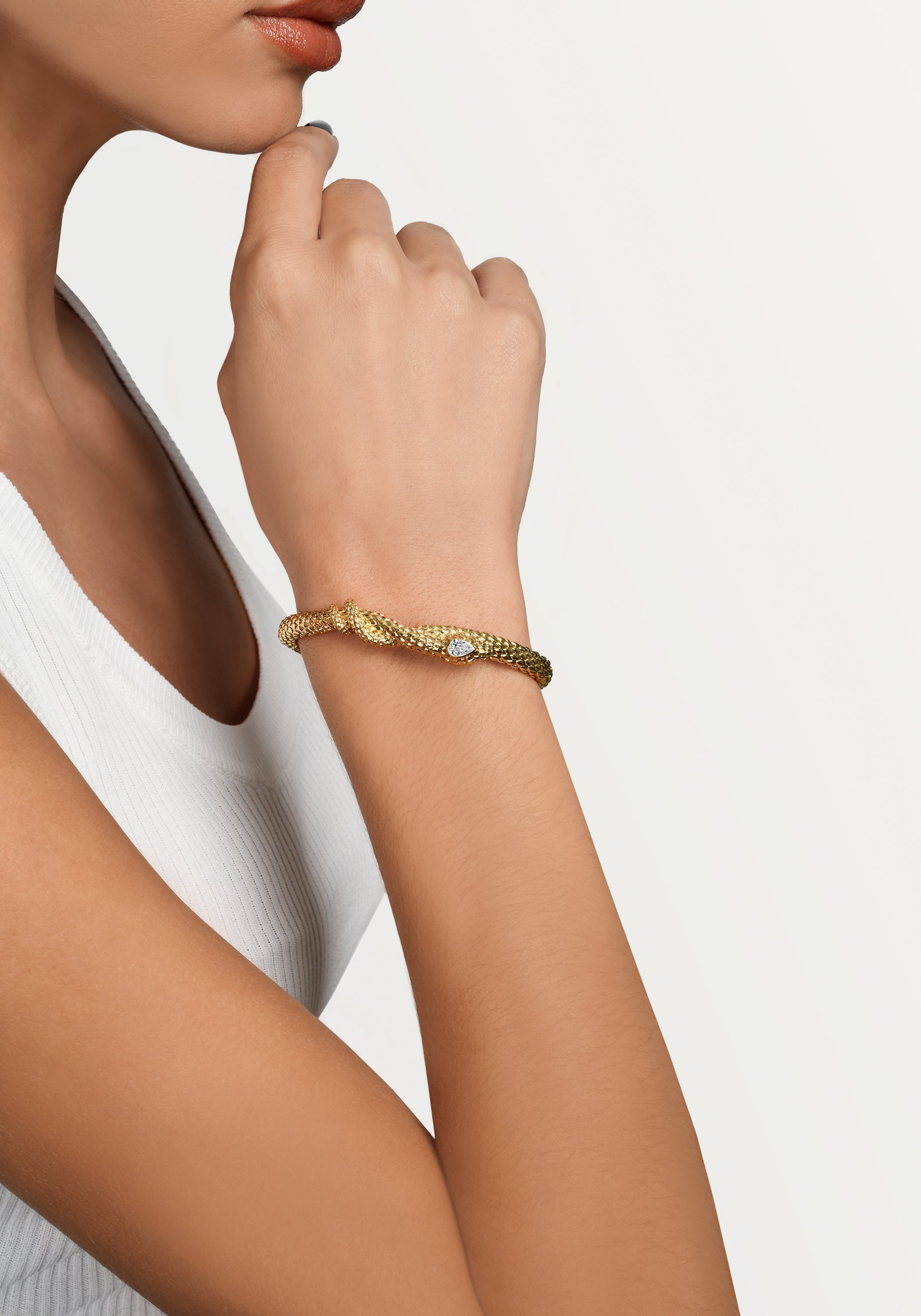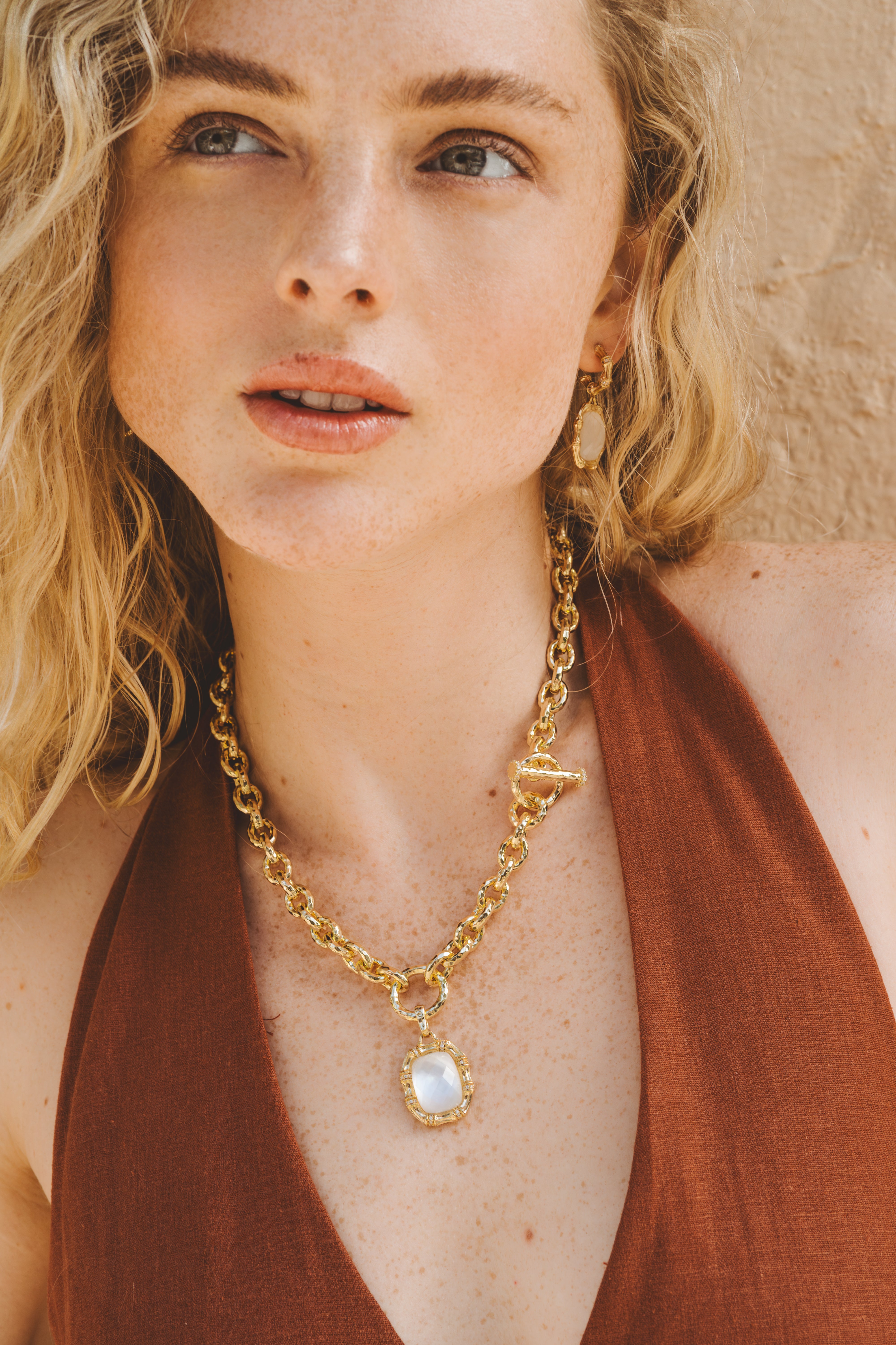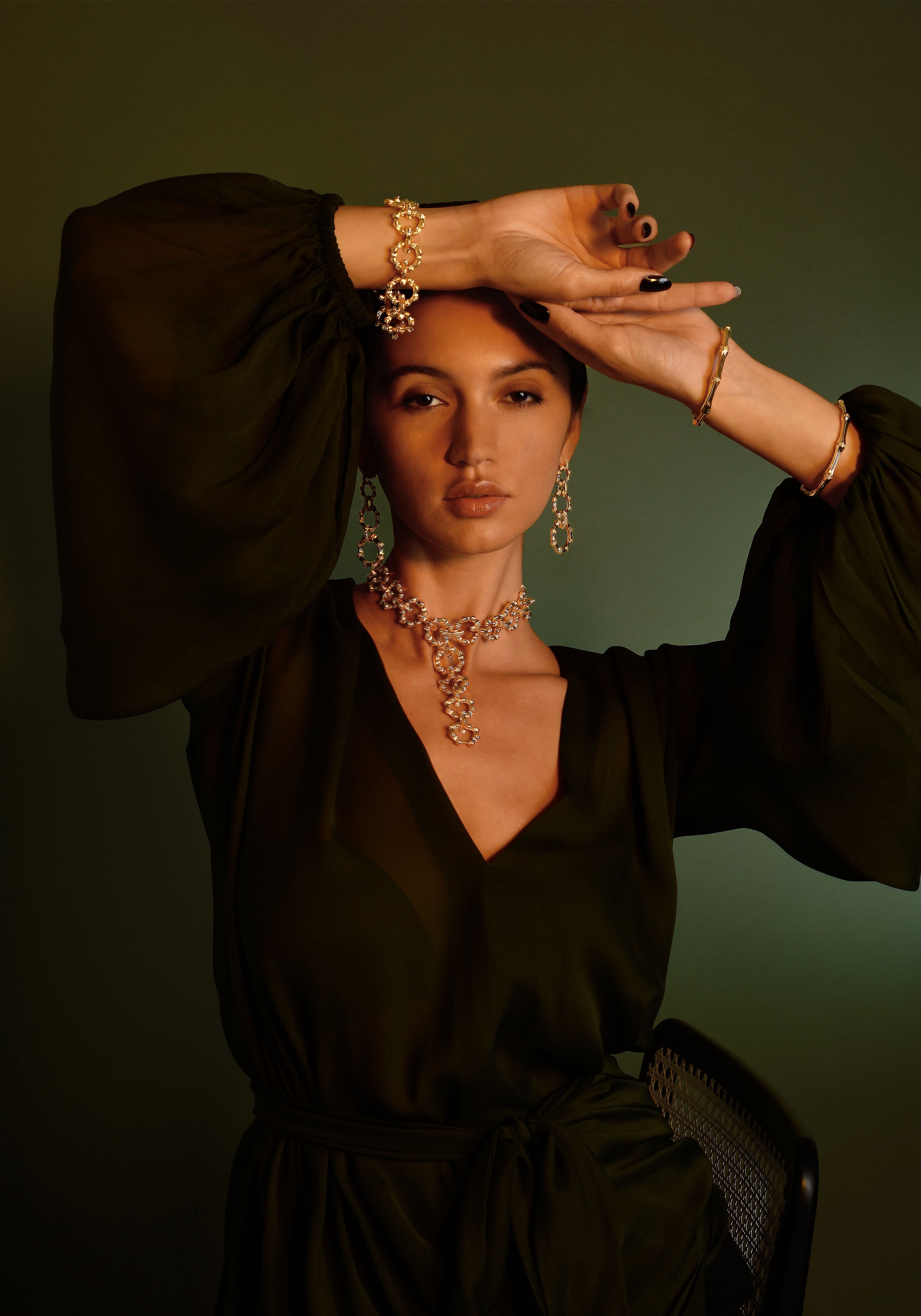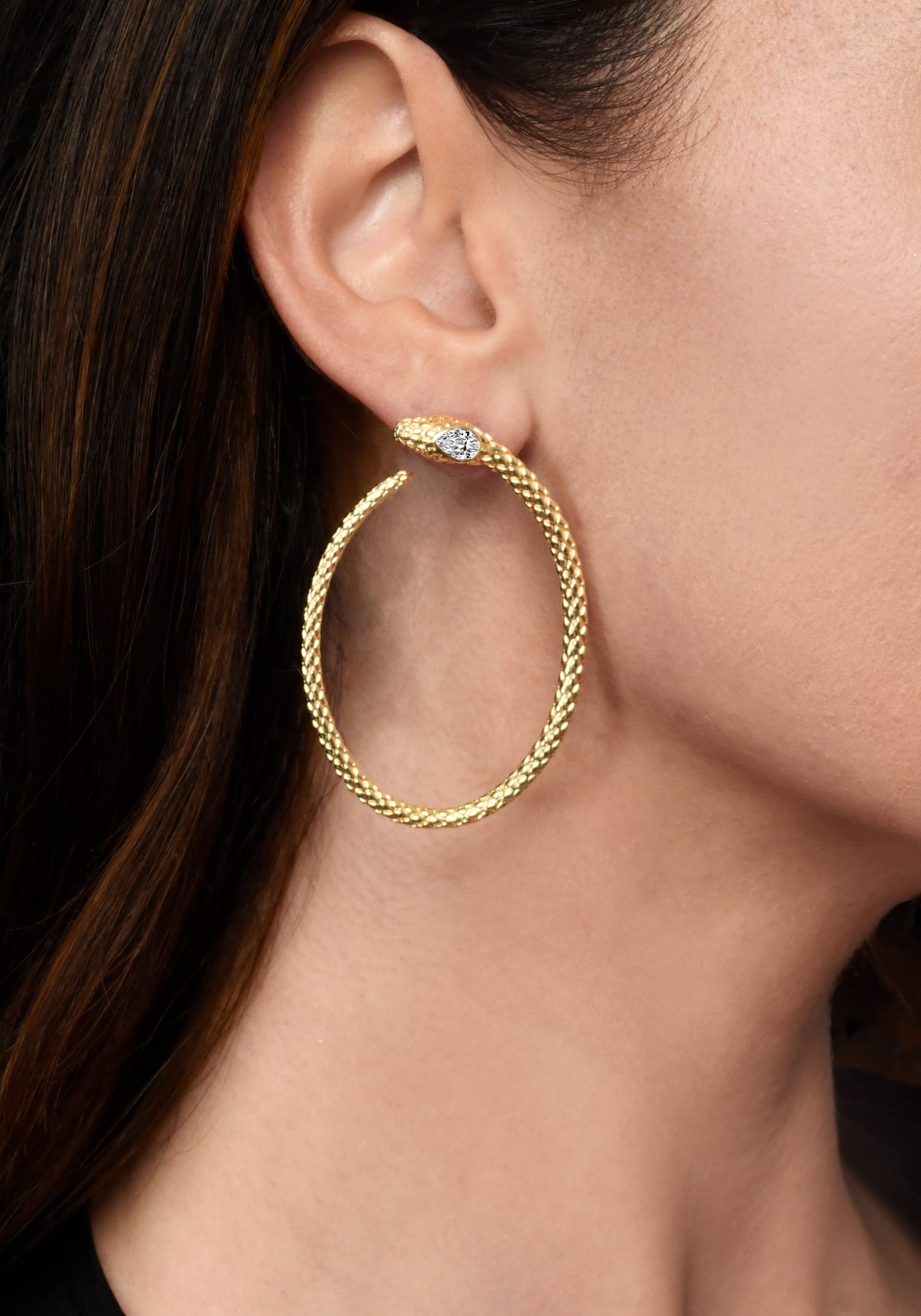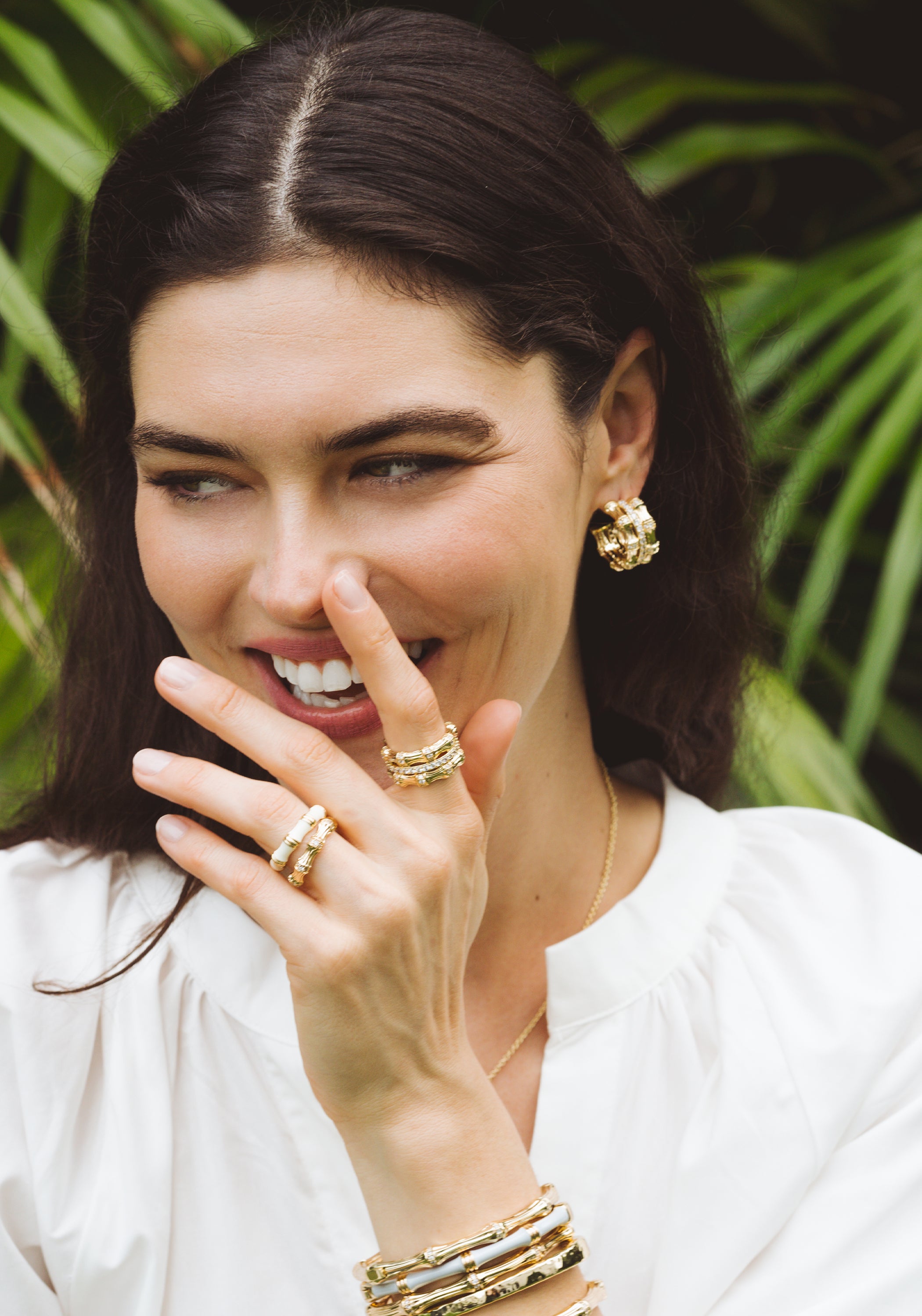 Anabel Aram Jewelry is made with nickel-free brass and dipped in 18k gold. Pieces with embellishments are hand set with crystals.